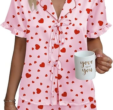 Pink with Red hearts PJ's